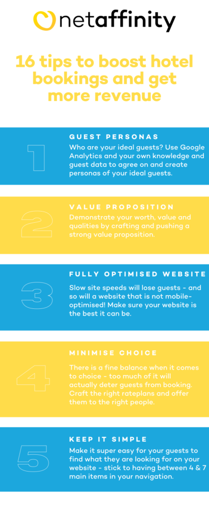 Check out our handy infographic with 16 tips on improving your hotel bookings and increasing revenue.👇