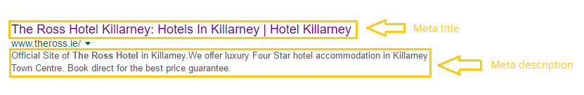 Metadata is the text that informs the search engine of the content of the page. It is mostly invisible to users, hiding behind the scenes in your website’s HTML. Your metadata is important – not only because it informs the search engine to your page’s content – but also because it often appears as the page preview text blurb in search engine results. The meta title is what appears first, followed by the meta description. Make sure that your hotel’s name and essential keywords appear in these fields.