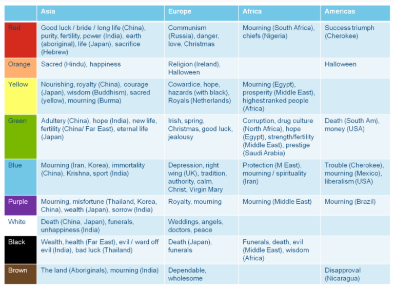 What colours mean depending on the country