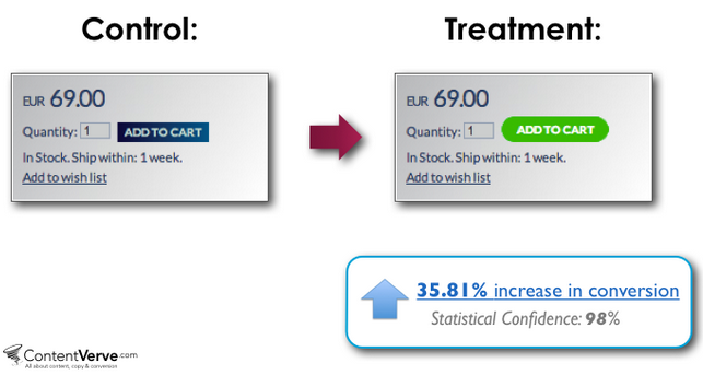 Changing their CTA colour from blue to green resulted in a 35.81% boost in their conversions.